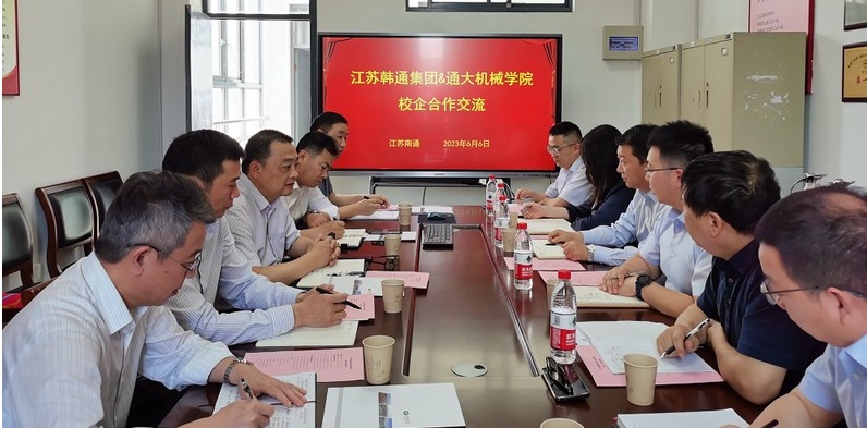 6月6日下午,江苏韩通集团有限公司总经理助理孟勋先生率领集团公司企业家们到机械工程学院开展校企合作交流活动。学院党委书记张志刚主持活动,对孟勋先生一行表示热烈欢迎,他表示,为企业和地方经济发展提供人才支持和智力支撑是教育的重要职责,学院将积极发挥教育服务功能,做好为企业服务工作,希望双方通过交流寻找合作切入点,在校企合作方面取得实质性进展。孟勋希望与南通大学机械工程学院加深科研交流合作,期望达到区域产业发展与创新人才培养的良性互动,共同培养适应现代工业发展需要的高技能、高素质人才,实现双方合作共赢。学院院长朱昱向企业介绍了学院在学科建设、人才培养、科学研究和社会服务等方面的发展情况。学院副院长姚兴田围绕横向项目合作、平台共建共享、研究生联合培养向企业介绍了我院对外科研与服务地方工作概况。学院副书记、副院长孙汉中围绕本科生培养、研究生培养向企业推介了毕业生人才资源。韩通集团企业家们结合集团宣传片及资料,介绍了企业筚路蓝缕,逐渐发展壮大的历程,并着重结合韩通研究中心规划建设、生产智能化改造、职称晋升等方面的迫切需求,畅谈了未来合作愿景。江苏韩通集团有限公司、南通市海洋水建工程有限公司、江苏