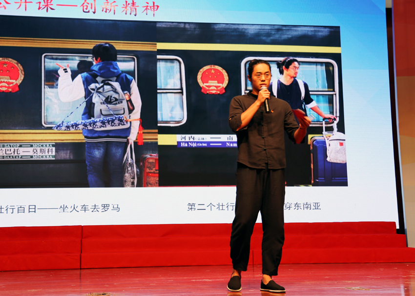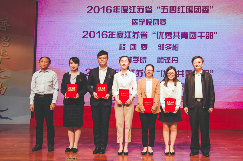 会上,简短的开场视频带领现场师生回眸了五四运动以来,在中国共产党的领导下,中国共产主义青年团从成立至今,95年波澜壮阔的历史与一代又一代中国青年热血奋斗的旋律。表彰会由“担青春责任、树青春榜样、做青春承诺”等三个篇章组成。四位青年师生代表分别讲述自身成长与追梦过程中的故事,展现我校在建设“四有”大学过程中,涌现出的可亲、可信、可学的榜样力量。体育科学学院青年教师沈金花有一个梦想,她希望能够参加世界排舞冠军赛,她想通过自己的努力让五星红旗在世界舞台上冉冉升起。2016年对于商学院青年学生姚舜来说是间隔年,也是选择创新,放飞自我的一年。他曾用100天走过29个国家,他与旅游卫视合作去塞尔维亚拍摄节目,给华为mate9拍摄宣传样片,他崇尚“换一种方式生活”因为“二十岁左右的我们一无所有,但我们有无限可能”。纺织服装学院学生会主席王硕分享了学生工作中的酸甜苦辣,他坚信“每一个人心中都有一份责任,每一个行为中都折射出一份担当,不要畏惧责任会有多重,因为,扛在肩上的是责任,也是翅膀。”文学院顾家奇同学在记录通大人青春岁月的同时,感受着通大的文化积淀,他说“我的心与通大血脉一起跌宕起伏”。伴随着第19届莫文隋研究生支教团的朗诵《献给志愿者的诗》,现场视频一幕幕回放着西部计划研支团在青海省贵德县支教的场景,研支团承载着的不仅是边远地区孩子们读书上学的希望,更是南通大学在教育扶贫中主动对接中央确立“扶贫攻坚”战略的责任与担当。