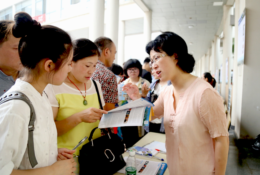 上午8点,咨询会刚一开始,各参会院校的展位前人头攒动。考生和家长们一边询问、记录着各高校招生计划和新增专业,一边尽可能多地收集招生材料。现场招生人员的脸上挂满了汗珠,可他们还是耐心地给学生及家长讲解着。各个高校的招生政策、录取政策、专业优势、师资水平、就业趋势、职业发展等问题成为考生和家长咨询的焦点。