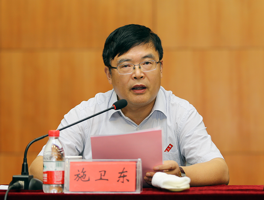 施卫东同志说,作为南通人,省委决定由他担任南通大学校长,既是组织的信任和关怀,也是服务家乡、奉献通大的机会。从今天开始,他将全身心地融入到这个有着辉煌历史和优良传统的大家庭之中,尽快使自己成为一位名副其实的“通大人”。施卫东承诺在今后工作中努力做到三个方面,一是加强学习,提高认识,做到思想上坚定;二是围绕中心,服务师生,做到履职上坚实;三是坚持原则,严格制度,做到组织上坚强。他表示,在校党委带领下,在建设有特色高水平教学研究型大学的征途上,抢抓机遇,开拓创新,锐意进取,扎实工作,敢于担当,不负众望,共建通大人的精神家园,共创南通大学辉煌灿烂的明天。
