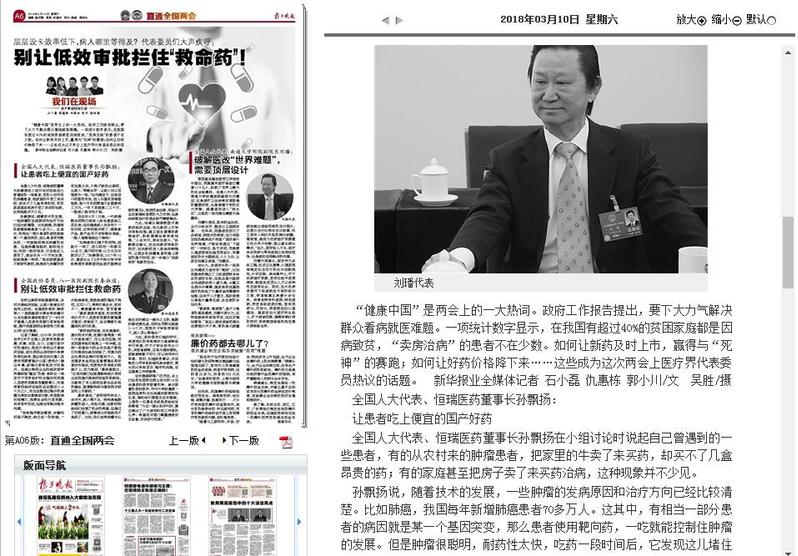 3月10日出版的扬子晚报在《直通全国两会》专栏刊发刘璠建议破解“医改世界难题”,需要顶层设计的建言。