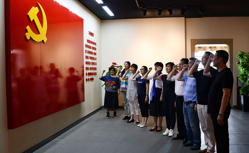 离退休党工委工作人员党支部全体党员重温入党誓词。