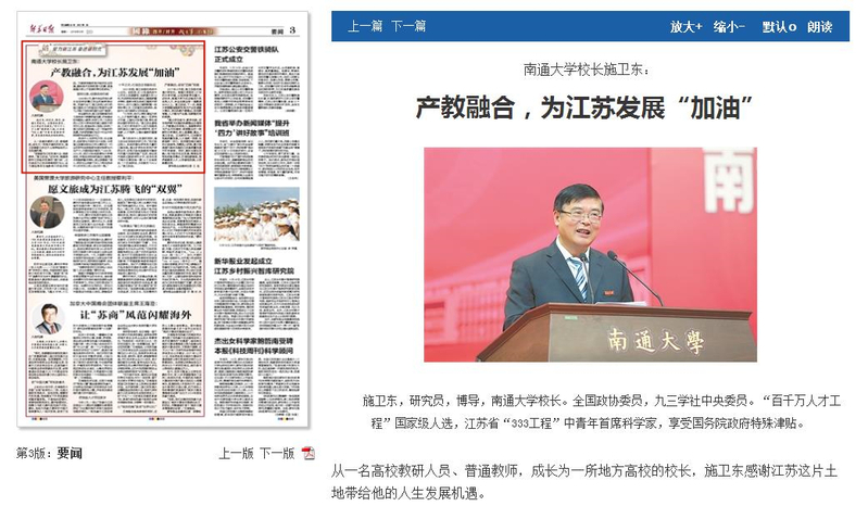 5月20日出版的《新华日报》在要闻版,刊发对校长施卫东的专访报道《南通大学校长施卫东:产教融合,为江苏发展“加油”》。
