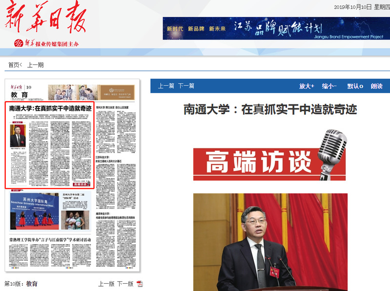 10月10日出版的《新华日报》在第10版,以《南通大学:在真抓实干中造就奇迹》为题刊发对我校党委书记浦玉忠的专访。