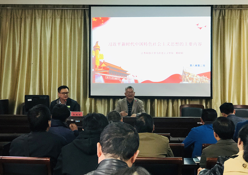 11月13日日下午,马克思主义学院党委组织全体教师听取江苏科技大学马克思主义学院副院长郭昭昭做的题为《习近平新时代中国特色社会主义思想的主要内容》专题讲座。