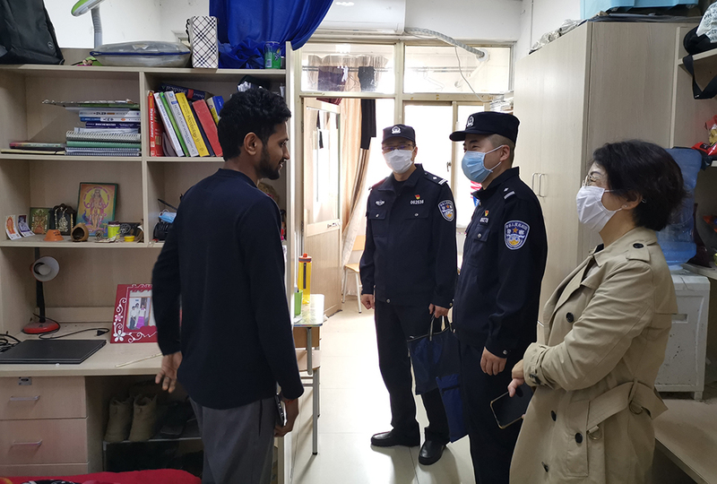 5月9日,南通市公安局出入境管理支队来我校检查国际学生疫情防控工作。
