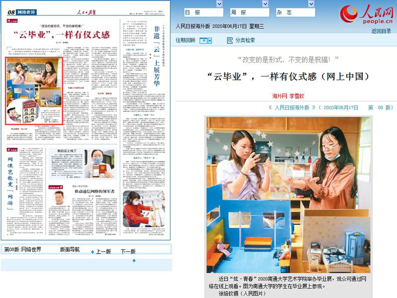 6月17日,《人民日报(海外版)》以图片形式报道我校艺术学院2020“炫·青春”毕业展演,展现了艺术学院的艺术教育成果。