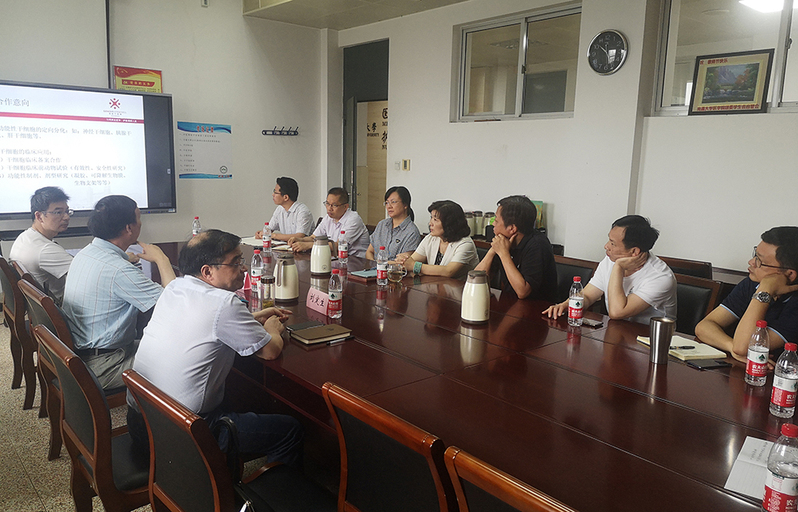 史亚琴对刘定生、殷鉴强一行的到来表示欢迎。她简单介绍了学院的基本情况,以及学科建设和人才培养等方面的资源优势,希望今后双方进一步加强合作交流,互补优势、共同发展,通过干细胞研究打造新型健康服务模式,为“健康中国”战略注入新的活力。