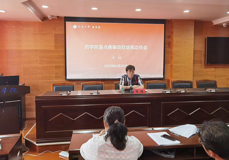 6月30日,药学院举办重点赛事项目培训动员会,学校团委书记朱城应邀作培训辅导。