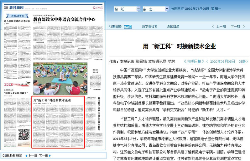 7月6日出版的《光明日报》以《用“新工科”对接新技术企业》为题,关注我校“新工科”人才培养。