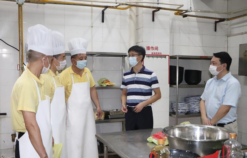 徐惠忠仔细询问了解暑期食堂日常运营情况,对大家的辛勤付出表示感谢,对一线员工高度的工作责任心,扎实认真的工作态度给予了高度赞扬,并叮嘱中心负责人和工作人员在确保防暑降温措施到位的前提下,一方面要做好疫情常态化防控的各项工作,另一方面要严把食品安全关,杜绝一切安全隐患,确保暑期留校师生的供餐需求。