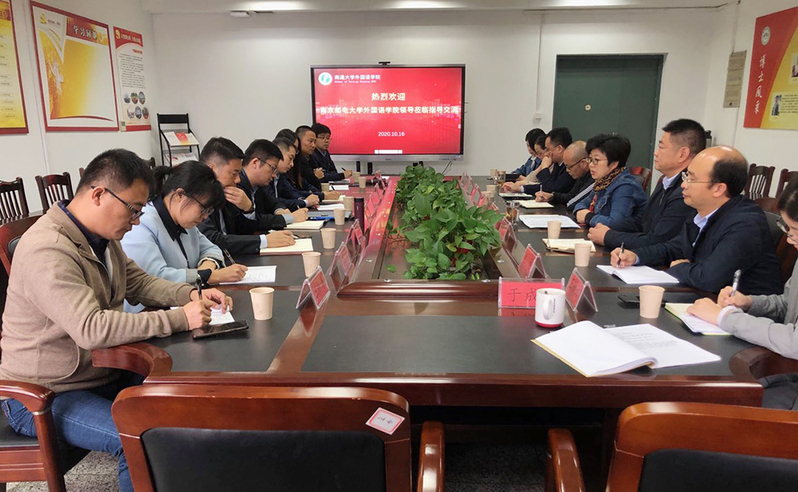 10月16日下午,南京邮电大学外国语学院党委书记陈晓波、院长袁周敏一行到外国语学院调研交流。