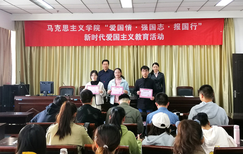 10月22日,马克思主义学院开展“爱国情·强国志·报国行”新时代爱国主义教育座谈交流活动,为主题征文活动的获奖代表颁奖。
