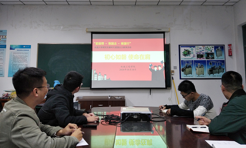 11月11日晚,机械工程学院开展“初心如磐,使命在肩”疫情防控经验交流会暨研究生爱国主义主题教育活动。