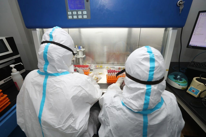 7月22日至27日,附属医院又陆续派出5名检验人员增援南京,开展全人群核酸检测工作。特检中心院内12名医务人员确保全天24小时轮班工作,核酸检测实验室24小时运转,一天核酸检测数达4485例。