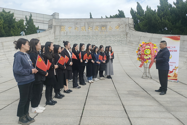 全体人员参观了苏中七战七捷纪念馆,在讲解员的解说中,追寻革命先烈的光辉足迹。参观结束后,在苏中七战七捷纪念碑前,研21英语专硕班王丹丹同学以《弘扬英烈精神,赓续红色血脉》为主题进行微党课宣讲,学生党员代表就所学专业与青年担当交流感悟,纷纷表示很受震撼和鼓舞。外国语学院学生第三支部书记王媛媛带领新党员重温入党誓词。外国语学院党委副书记、副院长陈俊怀作点评发言,他强调,学生党员要时刻发挥党员先锋模范作用,需加强理论学习,夯实专业基础,勇于投身实践。