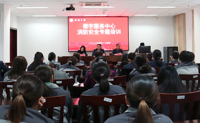 楼宇服务中心主任吕卫国作培训前动员讲话。他强调,安全管理工作责任重大,中心所有员工都肩负着消防安全工作责任,希望参加培训的人员今后如遇火情,能够以最快的方式报警、疏散学生,进行有效灭火,把损失降到最低。