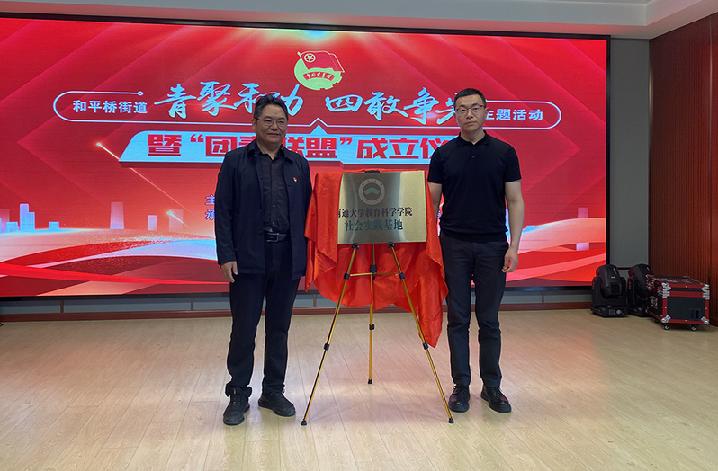 4月28日下午,教育科学学院团委与和平桥街道团工委举行共建社会实践基地揭牌仪式。