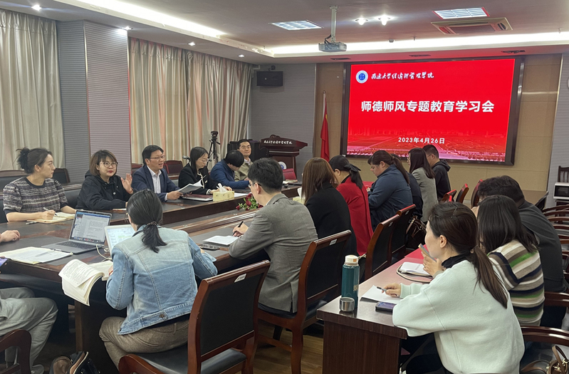 为深入学习贯彻习近平总书记关于师德师风重要指示精神,进一步推进师德师风建设,落实立德树人根本任务,4月26日下午,经济与管理学院召开师德师风专题教育学习会。会议由学院党委书记蒋国宏主持。