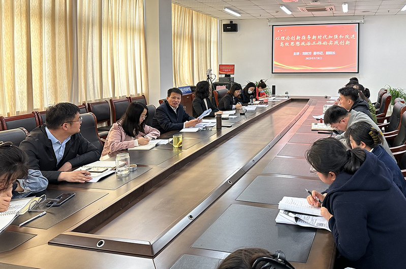 他从新时代高校思想政治工作面临的新要求、新时代高校思想政治工作理论创新的主要内容、新时代高校思想政治工作实践创新的路径选择等方面加以阐述,并围绕在全院辅导员中深入开展学习贯彻习近平新时代中国特色社会主义思想主题教育提出三点要求:一是坚持学深悟透,紧密结合学生思想政治工作实际,认真研读党的二十大报告、党章和《习近平新时代中国特色社会主义思想专题摘编》,深刻领悟党的创新理论的思想精髓和核心要义;二是围绕学思想、强党性、重实践、建新功,持续加强思想政治建设和职业素养、职业能力建设,以调查研究推动工作取得成果来检验理论学习的成效;三是突出抓好学生党员和入党积极分子主题教育,带动全院学生“学习二十大 永远跟党走 奋进新征程”主题教育实践活动更广泛、深入地开展。