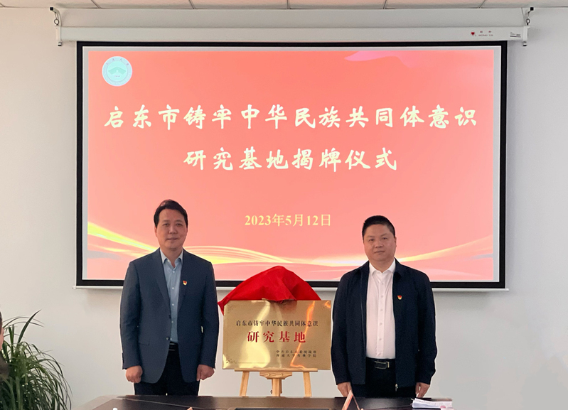 仪式上,朱晓阳与刘锦华共同为“启东市铸牢中华民族共同体意识研究基地”揭牌,并签订项目共建合作协议。