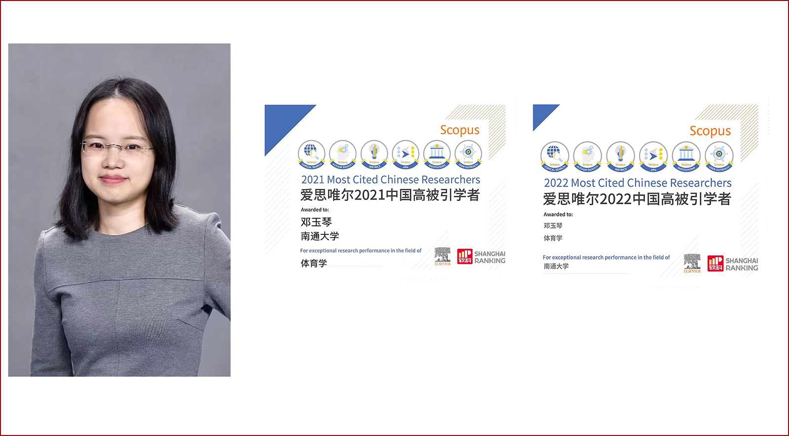 学院邓玉琴博士连续两年入选爱思唯尔中国高被引学者榜单