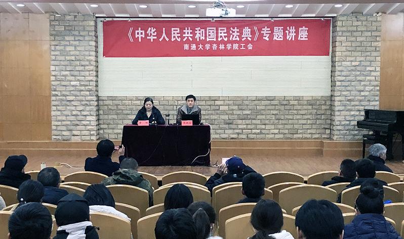为深入贯彻落实习近平总书记关于学习民法典、宣传民法典的重要指示精神,12月16日,杏林学院组织开展《中华人民共和国民法典》学习宣传活动,邀请马克思主义学院副院长吴延溢教授为学院教职工做题为《带着问题走进民法典》的专题讲座。讲座中,吴延溢从外延内涵、编纂历程、逻辑地位、科学体系、制度亮点等方面系统地解读了民法典。讲座引经据典,事例详实,分析透彻,融学术性、实用性、指导性于一体,为学院职工进一步深入学习和掌握民法典,树立法治意识,提升科学治理能力和水平提供了新颖的理论视野。学院副院长曹阳主持讲座,指出尊法是前提,全体师生要尊崇民法典,全面深入学习中国特色社会主义法律体系;学法是基础,党员干部、相关专业教师要做学习民法典的表率,先学一步、早学一步、学深一步,成为民法典领域的行家里手;用法是责任,各部门要系统梳理各项规章制度,确保民法典得到全面有效执行,不断推进学院工作高质量发展。(吴子飞/文 陈龙/摄)杏林学院组织开展《中华人民共和国民法典》学习宣传活动。