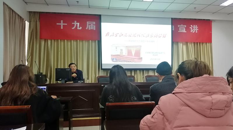 12月18日下午,全国基层理论宣讲先进个人、南通市委宣讲团成员姚呈明应邀来校为马克思主义学院师生作党的十九届五中全会精神宣讲报告会。姚呈明以“开启全面建设现代化国家新征程——解读党的十九届五中全会精神”为题,从新成就、新环境、新目标、新导向四个方面详细解读了党的十九届五中全会精神,进一步深化师生对全会精神的理解,为大家作了一次规范的基层理论宣讲示范,站位高远、通俗易懂,受到了师生们的一致好评。马克思主义学院相关负责人和师生代表出席报告会。(夏雅妮)全国基层理论宣讲先进个人姚呈明来校作报告。