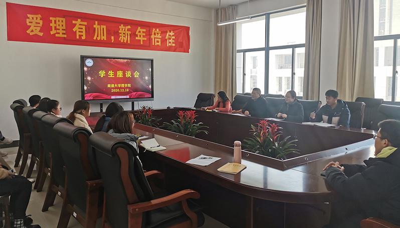 12月16日,理学院召开“爱理有加,新年倍佳”学生座谈会。座谈会上,同学们纷纷对一年以来志愿服务队的工作进行总结,围绕学习、生活、工作等发面进行交流发言,并就学院教学、管理、服务方面提出建议。学院党委书记张华对同学们一年来的工作与学习表示肯定,并希望大家立志成才,奋发图强,与时俱进,严于律己,有志向更要有行动,正确面对学习、工作和生活。理学院相关负责人、辅导员及“爱倍加”志愿服务队成员参加会议。(徐蓓)理学院召开学生座谈会。