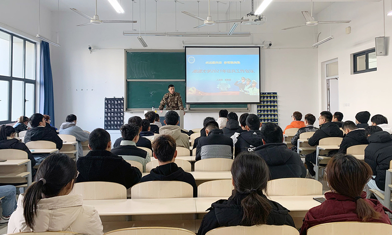 12月22日,杏林学院在启东校区召开2021年春季征兵工作咨询会。会上,校人武部张青国介绍了春季征兵入伍流程、网上信息填报和体检等注意事项,并详细解读了国家征兵政策和学校对应征入伍学生的优抚措施,现场回答同学们关心的问题。杏林学院一直重视做好学生征兵工作,早在今年10月就结合学生个人发展意向调查,以班级为单位组织对意向入伍情况进行摸底。征兵工作启动以来,将征兵动员作为加强国防教育和促进毕业生就业的重要途径,组织在全院学生尤其是2021届毕业生中大力宣传征兵政策和新体检标准,为做好春季征兵工作奠定基础。学院近百名意向应征入伍学生参加会议。(陆冠臣)杏林学院召开学生春季征兵工作咨询会。
