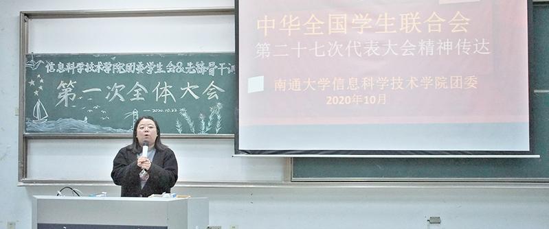 10月22日下午,信息科学技术学院团委召开全体学生干部会议,专题学习全国学联第二十七次代表大会精神。学院团委书记徐明宇介绍了全国学联第二十七次代表大会会议概况,重点带领全体学生干部学习了《习近平致全国青联十三届全委会和全国学联二十七大的贺信》《唱响新时代爱国团结跟党走的青春之歌》致词和关于学联学生会工作人员改进作风服务同学的若干规定等内容。她要求学生会成员要将学生会职能定位和结构改革的各项规定和精神学深学透,在工作中抓好落实执行,积极勤勉做事,营造良好氛围,提高自身的大局贡献度、同学满意度、社会美誉度,努力做到全心全意为同学服务。学生干部们围绕习近平总书记贺信和党中央致词展开讨论。大家纷纷表示,将认真履行学生会职责,进一步明确学生会深化改革的各项要求。在今后的学习工作中,从自身做起,身体力行,把会议精神落到实处,做好本职工作,协调好工作和学习的关系,牢记全心全意为同学服务的宗旨,肩负起历史赋予的光荣使命,在矢志奋斗中谱写新时代的青春之歌。(徐明宇)信息科学技术学院专题学习全国学联第二十七次代表大会精神。