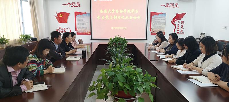 10月22日,杏林学院党委邀请医学院原党委书记周逸萍、外国语学院原党委书记施晧作学生党建工作专题培训。学院院长顾卫标、纪检专员钱亮华出席培训会。周逸萍和施皓以问题为导向,结合学生党建工作实际,对发展学生党员如何坚持政治标准、如何确保程序规范进行了讲解。顾卫标强调,学生党建工作是党务工作的重要组成部分,是引导青年学生健康成长成才的有力保证,全体党支部书记要不断提高政治站位,抓好党支部建设、扎实有效开展党员教育管理工作;要把好关、导好向,持续提升党员发展质量。钱亮华指出,学生党支部要贯彻落实好《中国共产党章程》《南通大学发展党员工作实实施细则》,严格遵循“三个坚持”原则,全面加强规范化建设;要高度重视党员教育管理工作,将严的要求落实到工作的全过程和各方面。会上,参与培训的支部书记还围绕当代大学生入党动机多元化、党员再教育如何开展、当前学生党建存在的问题、如何进一步加强党建与思政工作有机融合、党员组织关系的管理等方面进行了深入交流和探讨。杏林学院党群工作处、学生党支部书记参加会议。(王宁/文 崔岩岩/摄)杏林学院党委组织学生党建工作业务培训。
