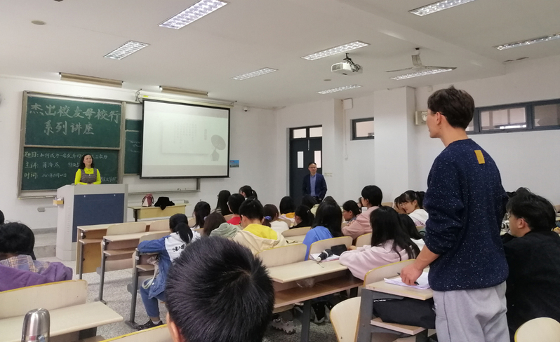 10月21日下午,马克思主义学院思想政治教育专业“杰出校友母校行”系列讲座开讲。我校89届校友、如皋市实验初中政史地教研组长、江苏省特级教师蒋海燕老师应邀担任主讲嘉宾。蒋海燕结合自身经历、从教感受,作了题为《做一个新时代有情怀的思政老师》的主题讲座。讲座从“让人生的每一次偶然成为助推成长的动力”“感悟教学真谛,演绎生命精彩”两个方面,讲述了自己教师成长之路的偶然和必然,阐述了爱学生、教学生的态度和方法问题,传达出要坚定职业信念等观点。本次讲座,让同学们对如何做一个新时代有情怀的思政老师有了更深刻的理解和认识,进一步激发了大家对思政专业的了解与热爱,增强了同学们的专业自信。(石佳)马克思主义学院举办思想政治教育专业“杰出校友母校行”系列讲座活动。