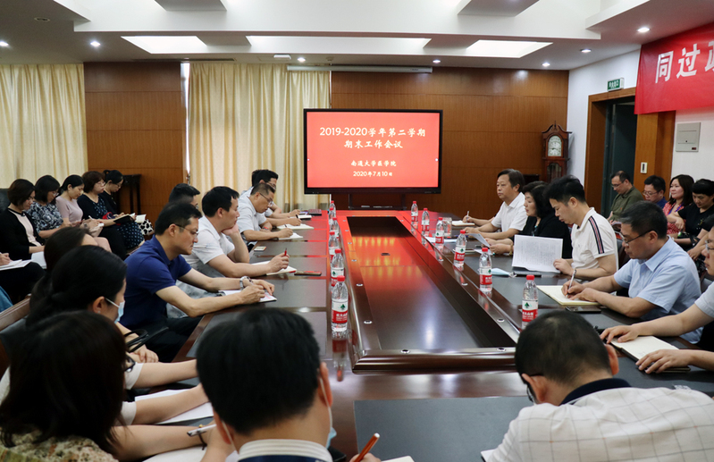 7月10日下午,医学院召开学期末工作会议,总结分析上半年工作开展情况,安排部署下半年重点工作。学院党委书记史亚琴对上半年疫情防控工作、党建工作以及学院2020年目标任务完成情况进行了总结,并就落实好下半年重点工作提出三点要求:一是要讲政治重学习,坚定理想信念;二是要抓重点保落实,推动全局发展;三是要补短板强弱项,打造特色品牌。她希望系室主任、支部书记要进一步认清形势,明确目标,当好“领头雁”,做好“排头兵”,团结带领系室老师,迎难而上,开拓创新,共同夺取疫情防控和事业发展“双胜利”。学院院长孙斐从疫情防控、“十四五”事业发展规划编制、“学院办大学”综合改革、人才队伍建设、国家级一流本科专业建设、新一轮学科评估和专业博士点申报、安全稳定等七个方面进行了工作部署。他希望全院上下围绕“立德树人”根本任务,对标一流、改革创新,以更加优异的成绩,为学校建成特色鲜明的高水平大学贡献力量。学院常务副院长、附属医院副院长桑爱民主持会议,就贯彻落实好会议精神和开展好下半年工作,提出三点希望:一是要以归零的心态,找准新定位;二是要以积极的状态,创造新业绩;三是要以奋斗的姿态,开创新局面。学院全体院领导出席