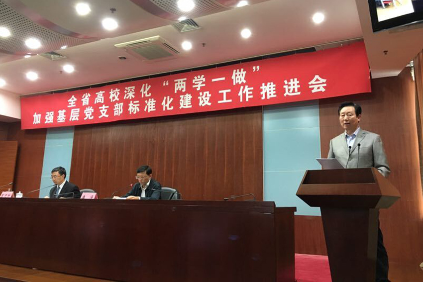 10月25日,省委教育工委在南京召开了全省高校深化“两学一做”学习教育、加强基层党支部标准化建设工作推进会。校党委书记成长春代表学校党委作了题为《落实落细全面从严治党要求扎实推进标准化党支部建设》的主题发言。 会议由省委教育工委副书记潘漫主持,省委教育工委书记、教育厅党组书记葛道凯讲话。南通大学、南京大学、南京航空航天大学、南京师范大学、苏州大学、江苏师范大学等6家单位作交流发言,分别从学校党委、学生党支部、院系一级党组织以及基层教工党支部等不同层面的党组织标准化建设的主要做法和经验体会做了交流。 成长春从深化思想认识、强化顶层设计、严格落实责任、健全制度抓规范、提升能力强队伍、夯实阵地增活力、强化考评促长效等方面介绍了我校在推进标准化党支部建设、发挥基层党组织和广大党员重要作用过程中落实主体责任、发挥领导核心作用、突出严实标准等经验做法,并从推动基层党建工作创新、促进学校事业发展、落实立德树人根本任务等角度总结了我校在推进标准化党支部建设的具体成效。 推进会以视频会议形式在全省高校同步直播,校党委副书记、副校长江应中以及我校各二级党组织负责人、党务部门负责人、各基层党支部书记代表等近